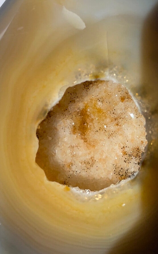 Hele mooie Agaat punt met Druzy kristallen 308 gram, totaal hoogte 9 cm.