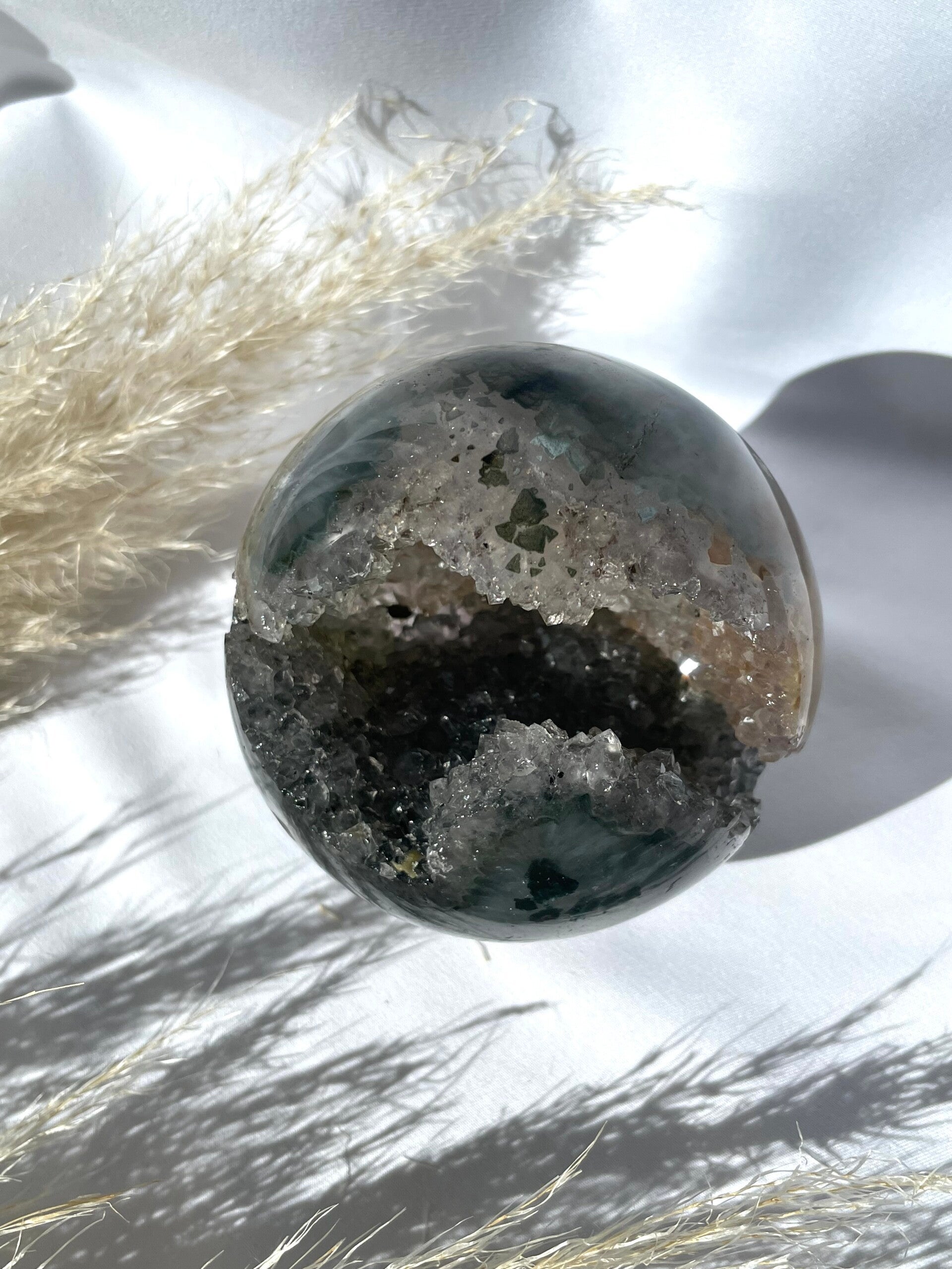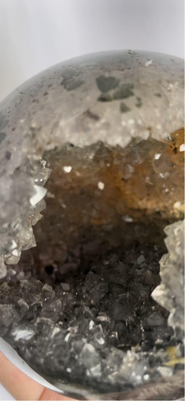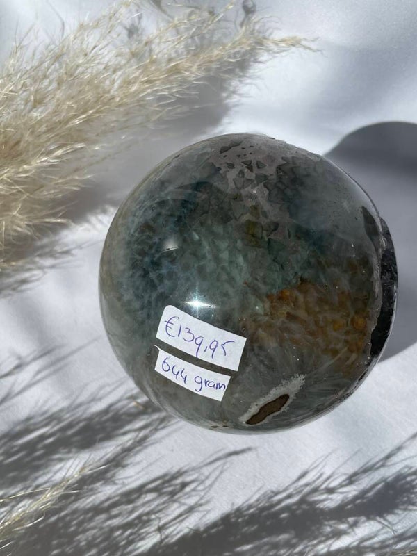 Mos Agaat Bol met Druzy kristallen van 644 gram en een doorsnede van 9cm.