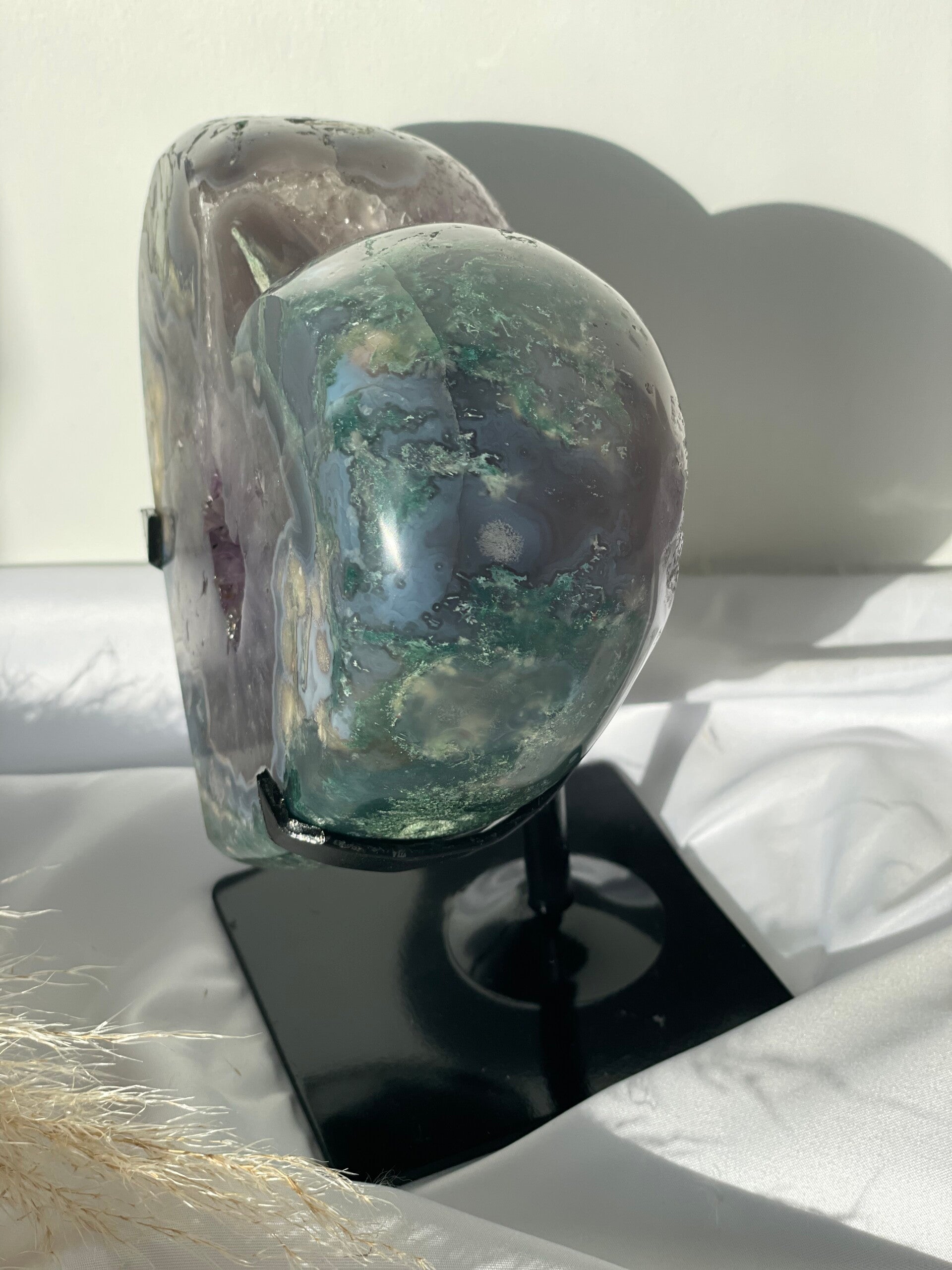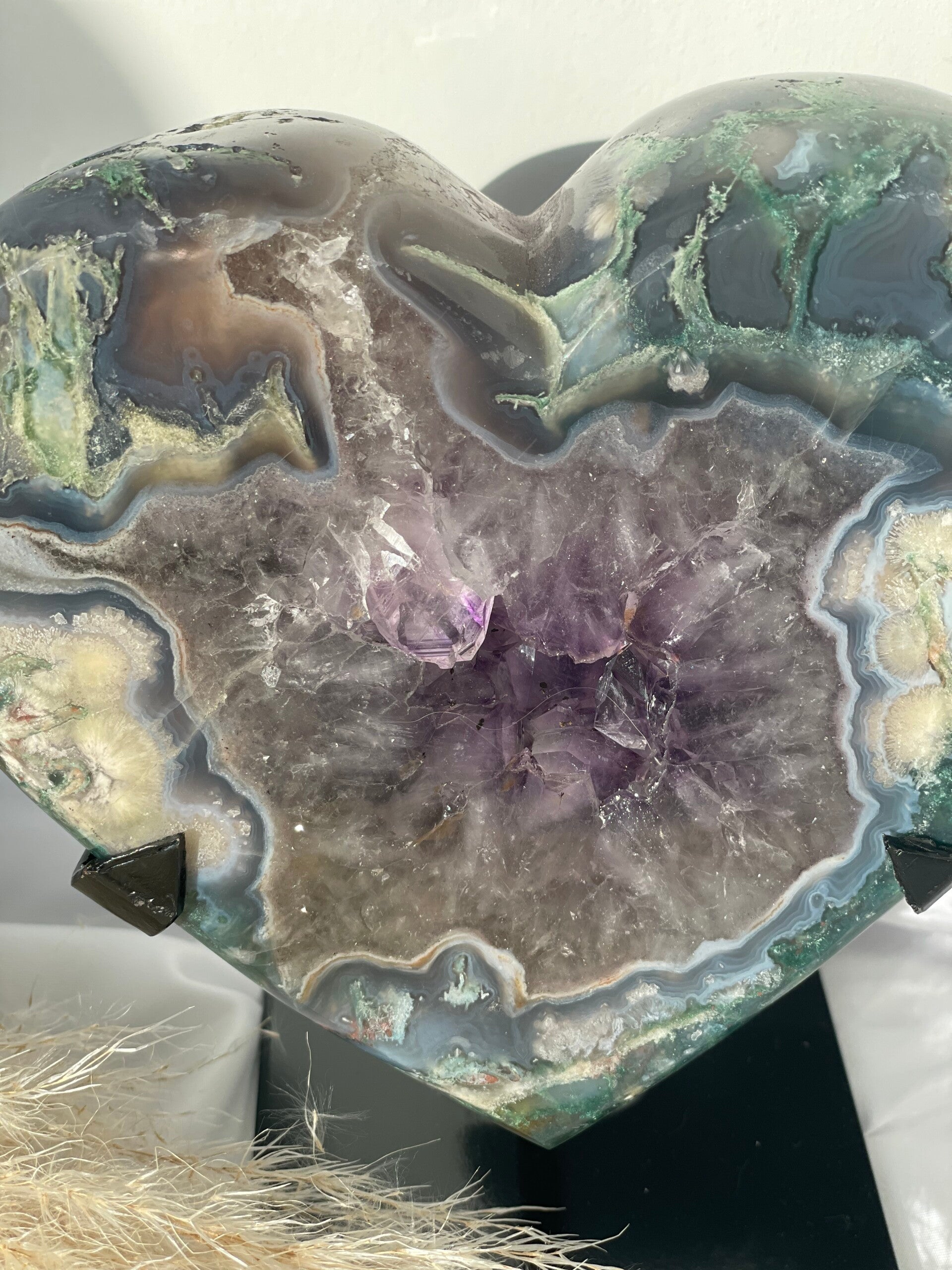Hele mooie dikke en zware hart van Amethist en Mosagaat. Deze Beauty is ruim 2 kilo en echt een Eyecatcher in huis.