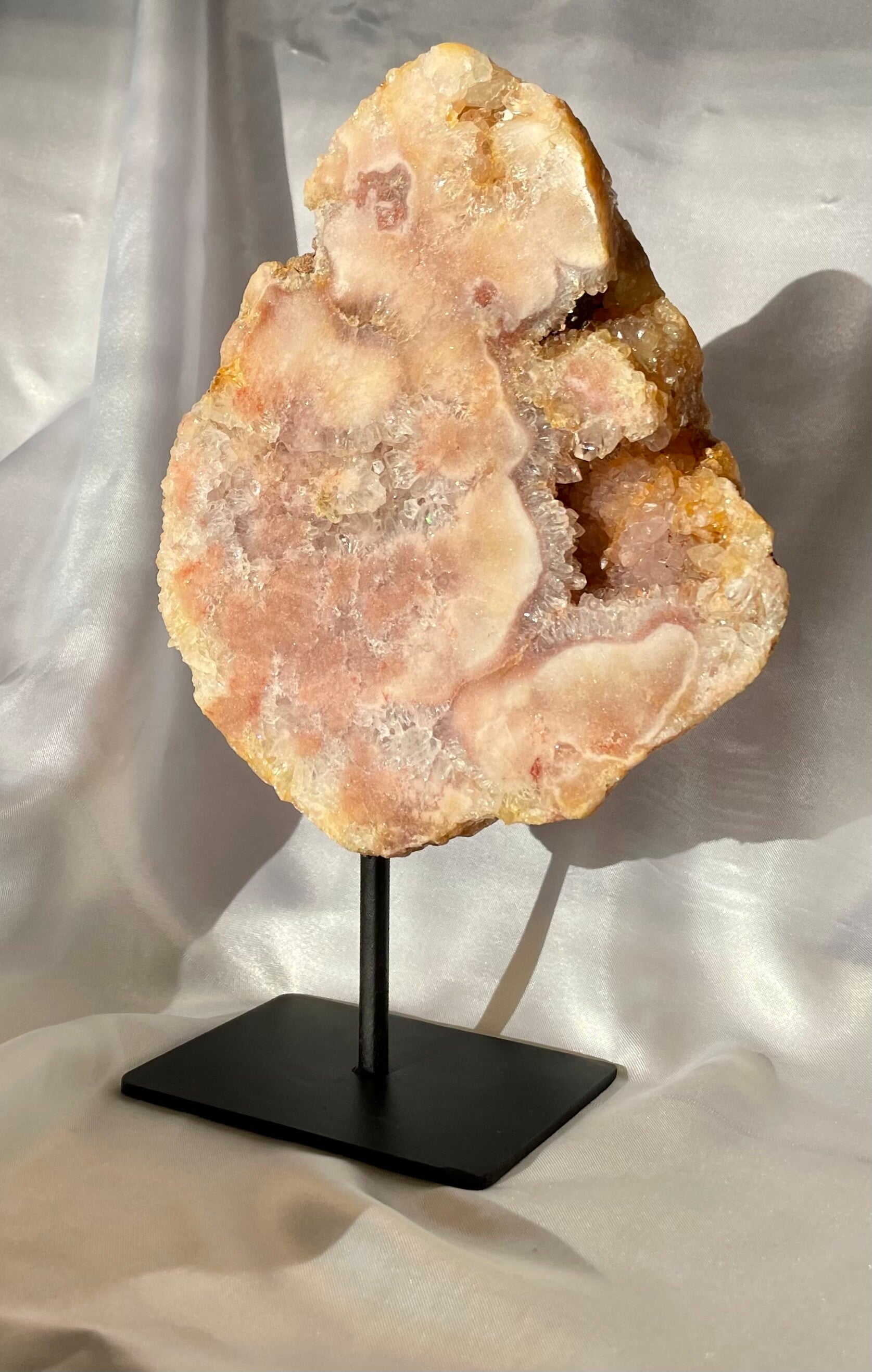 Mooie Roze Ametist op standaard met mooie vormen en kristallen.