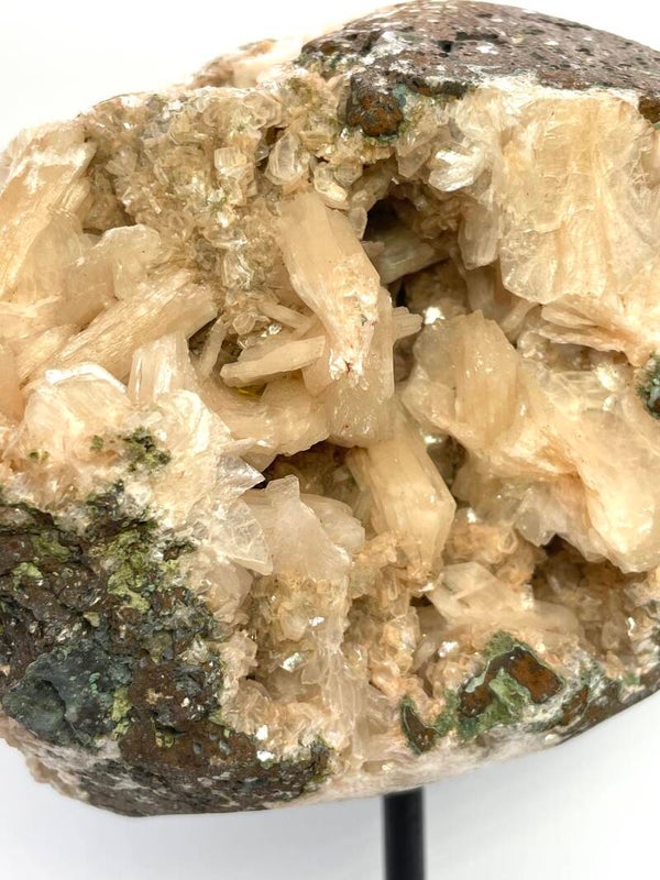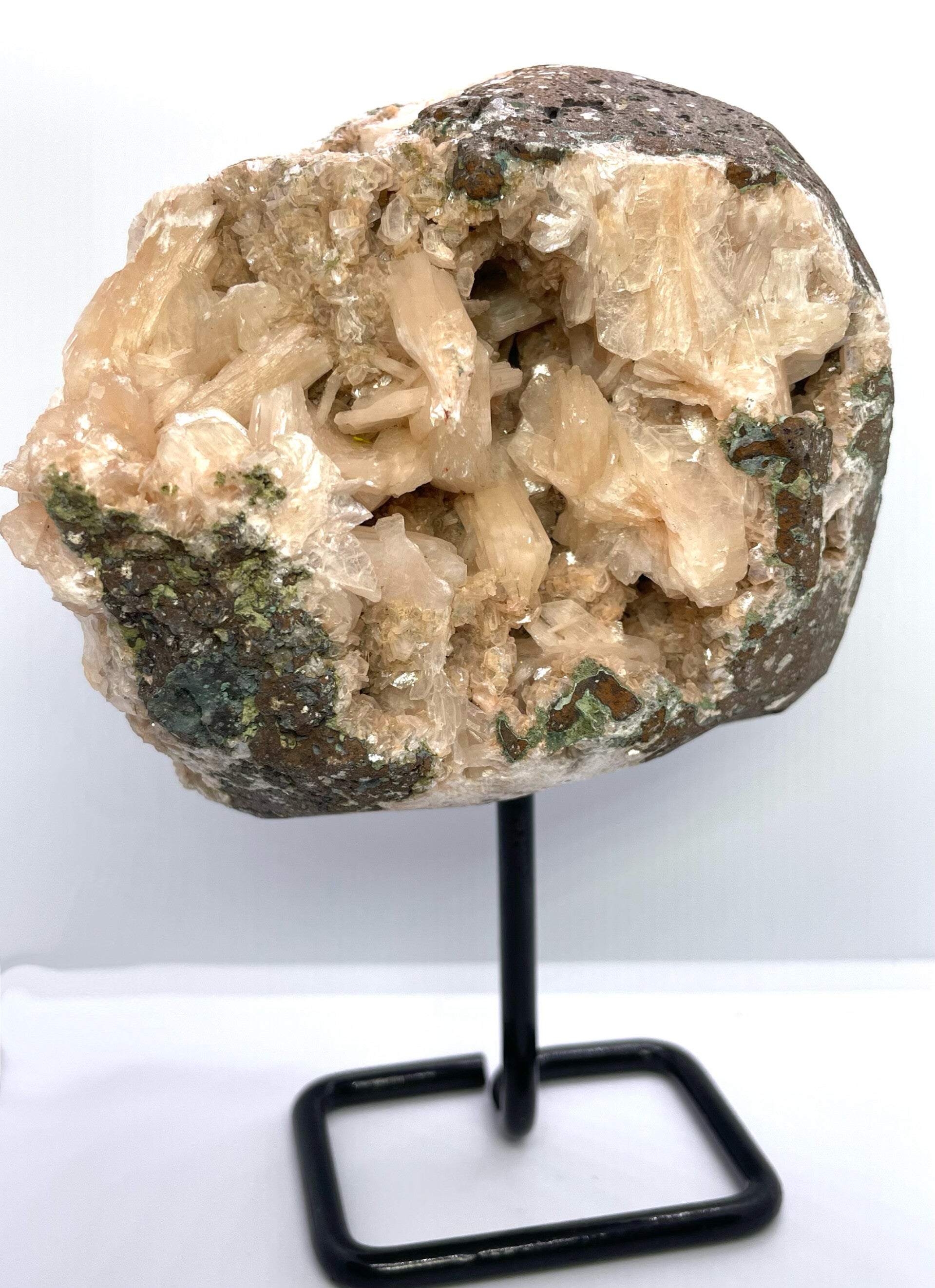 Hele mooie Zeoliet op standaard in mooie roze kleuren en schitteringen.
