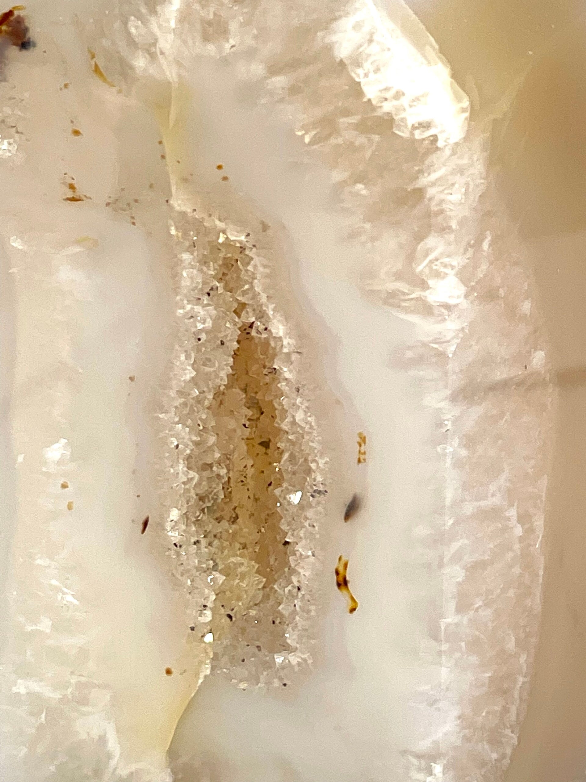 Mooie Agaat punt met in het midden kristallen.