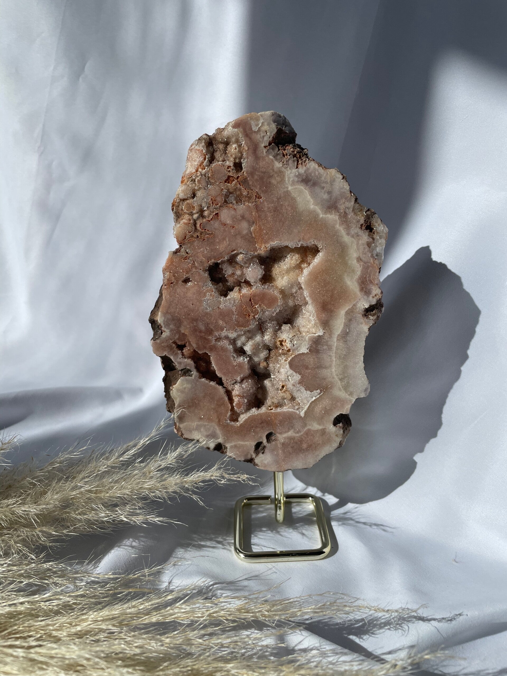 Hele mooie Roze Amethist op standaard met een mooie roze kleur, vorm en kristal vorming. De roze Amethist kan ook los van de standaard en hij kan op de standaard draaien.