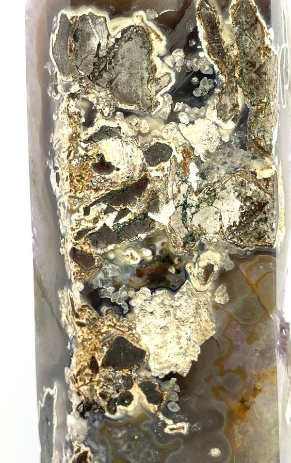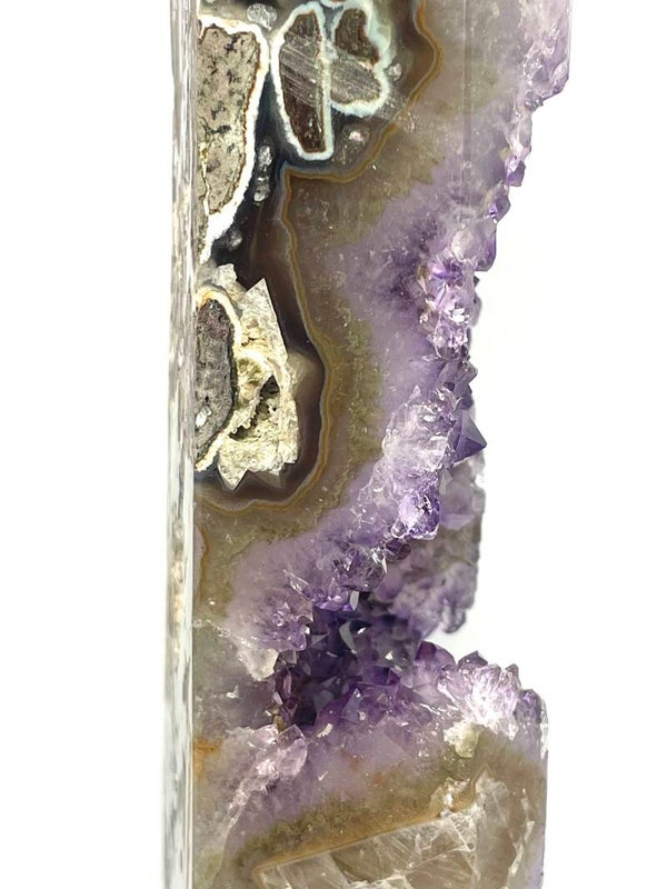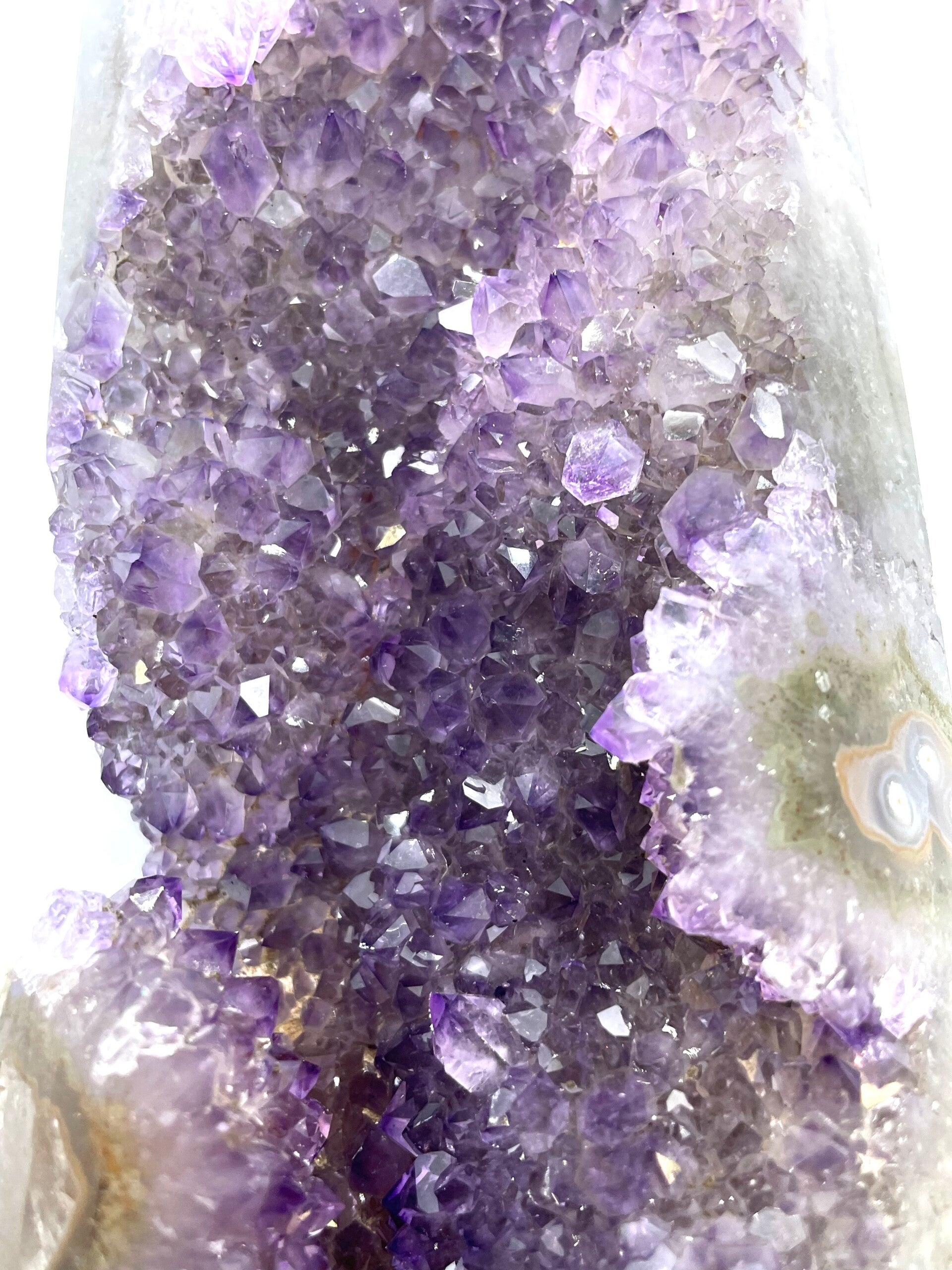 Hele mooie Amethist/Agaat punt met mooie kristallen en vormgeving.